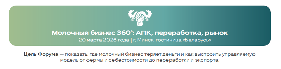 Отраслевой форум «Молочный бизнес 360°: АПК, переработка, рынок» 20 марта 2026 г. в г. Минске